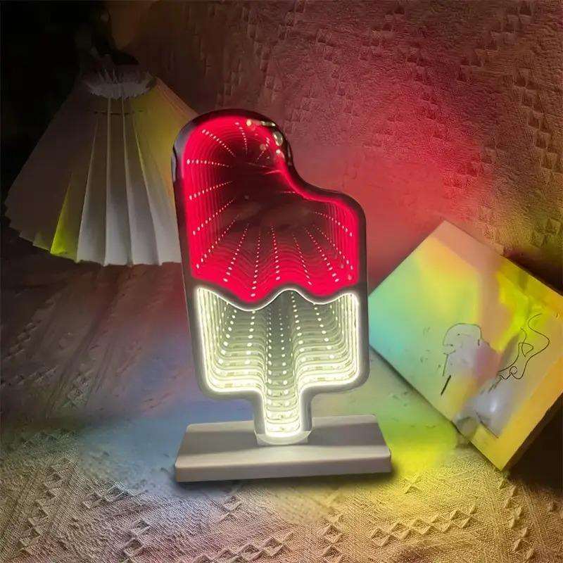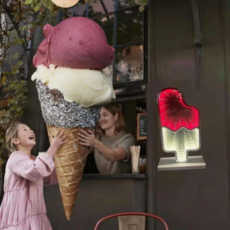 USB-Powered Vibrant LED Neon Ice Cream Abyss Mirror for Dessert Shops Mall Decor-Durable Modern Decoration Stepless Dimming
