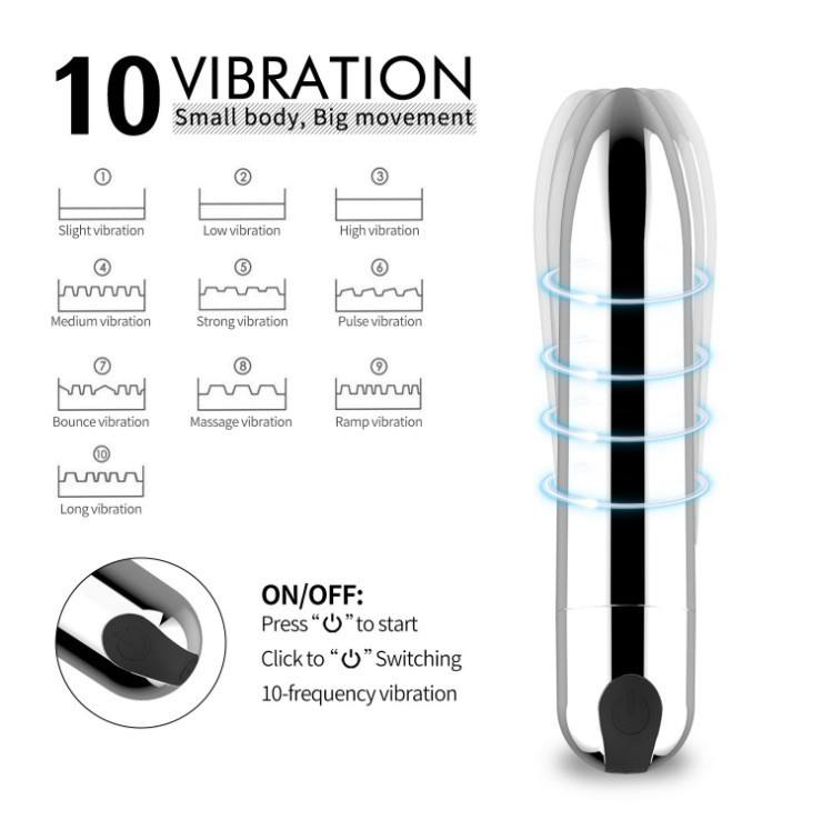 USB Rechargeable 10-Speed Vibrating Bullet Vibrator for Women with Clitoral & G-Spot Stimulation