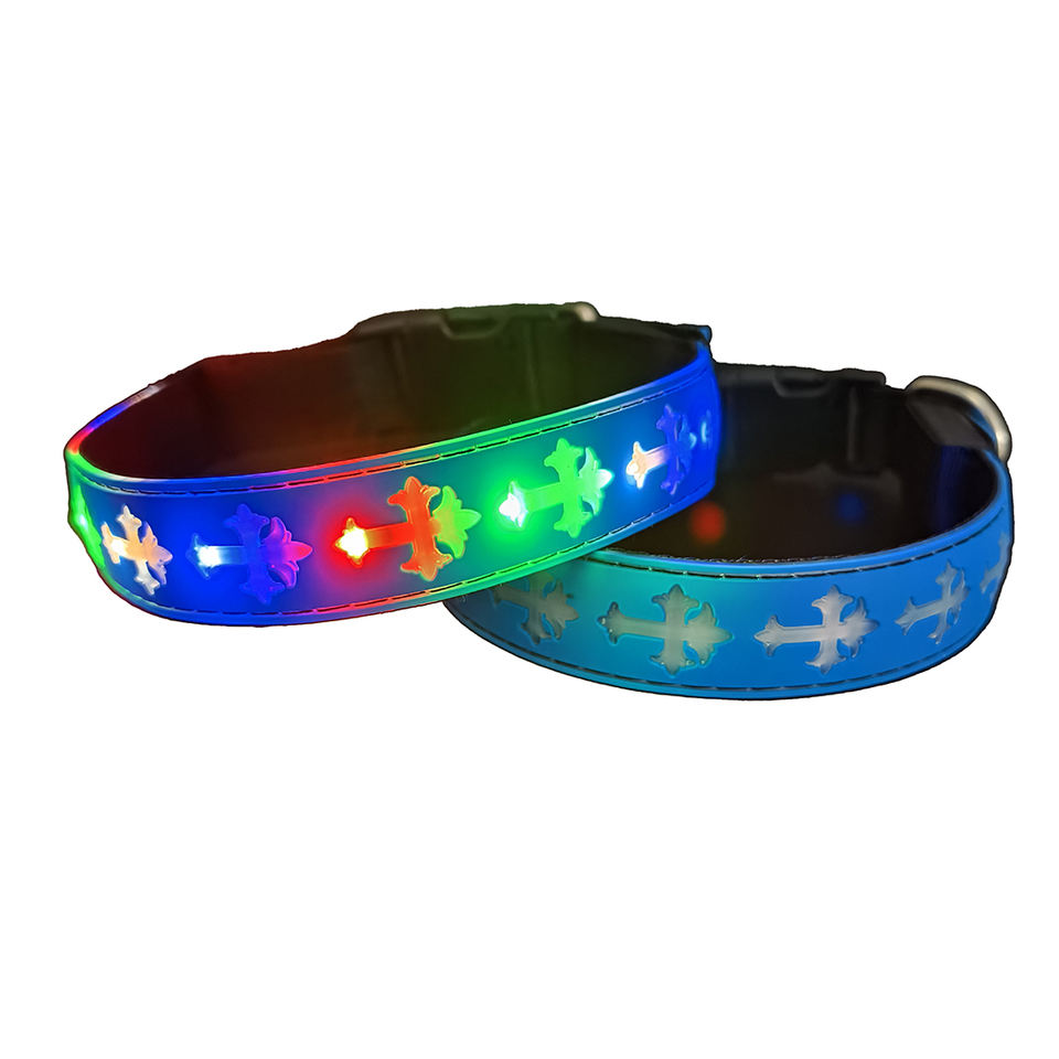 USB Rechargeable LED Luminous Pet Collar RGB Color Solid Pattern Ribbons High-Visibility Adjustable Glow LED Night Safety