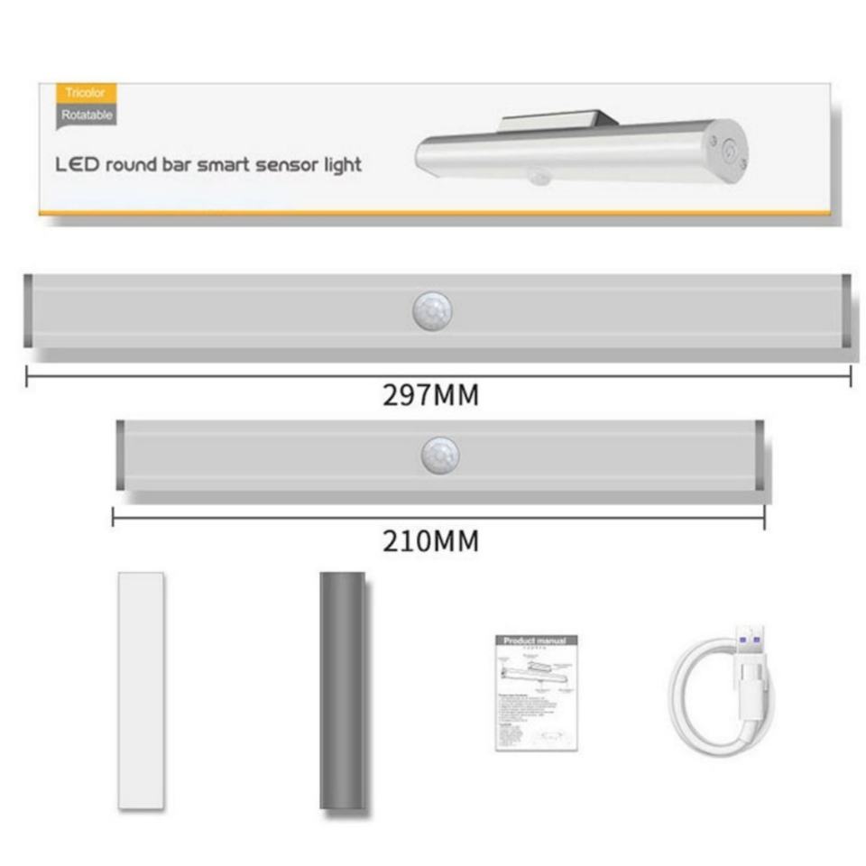 USB Rechargeable LED Round Bar Smart Sensor Light Human Body Motion Sensor Night Light for Bedroom Staircase Wardrobe