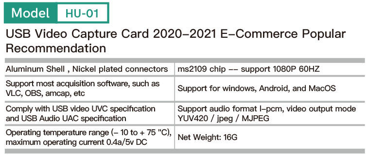 USB Video Capture Card Ms2109 Chip Support 1080P 60HZ Audio Video Capture Card HD Video Grabber Record Box