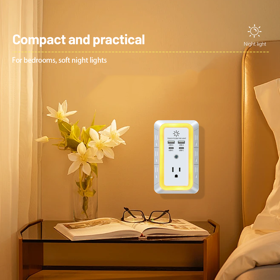 USB Wall Charger with Surge Protector 7 Outlet Extender 4 USB Charging Ports 1800J Power Strip Multi Plug Outlets Wall Adapter