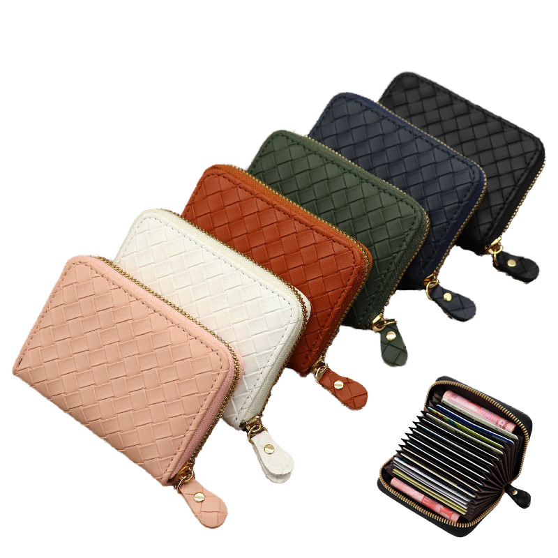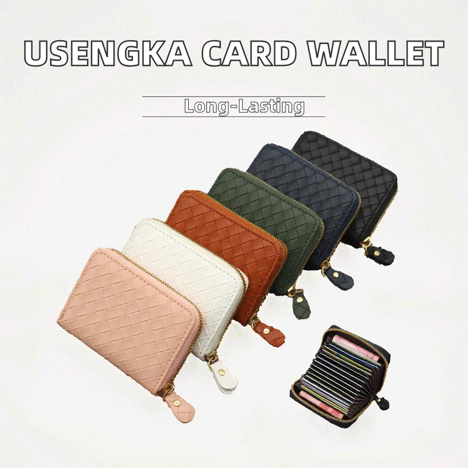 USENGKA High Quality Ladies PU Leather Woven Wallet with 18 Card SlotsAccordion Style Business Card Holder