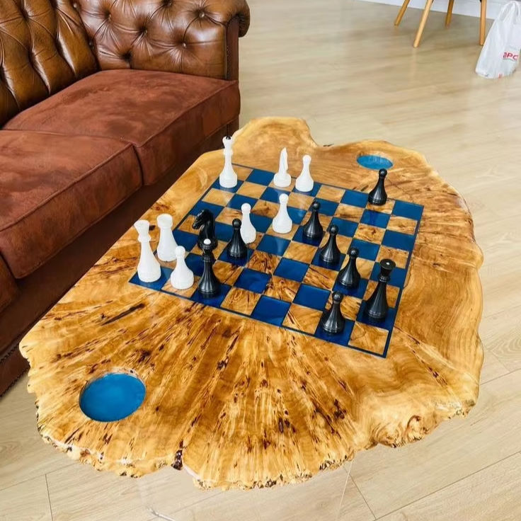 USER QUALITE CUSTOM WOOD AND RESIN CHESS BOARD BOX Chess Game Set Luxury Resin Red Black Chess Piece by Tayyab Handicraft