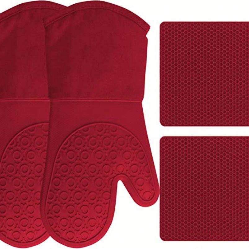 USSE Custom Extra Large Waterproof Slip-resistant Eco-Friendly Silicone Suede Oven Mitt Set BBQ Gloves Dishwasher Safe for
