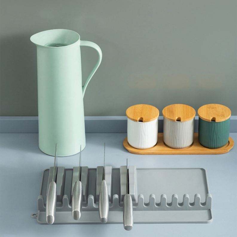 USSE Heat Resistant Eco-Friendly Grey Silicone Utensil Rest with Drip Pad Kitchen Utensil Holder for Spoons Ladles Tongs Knife