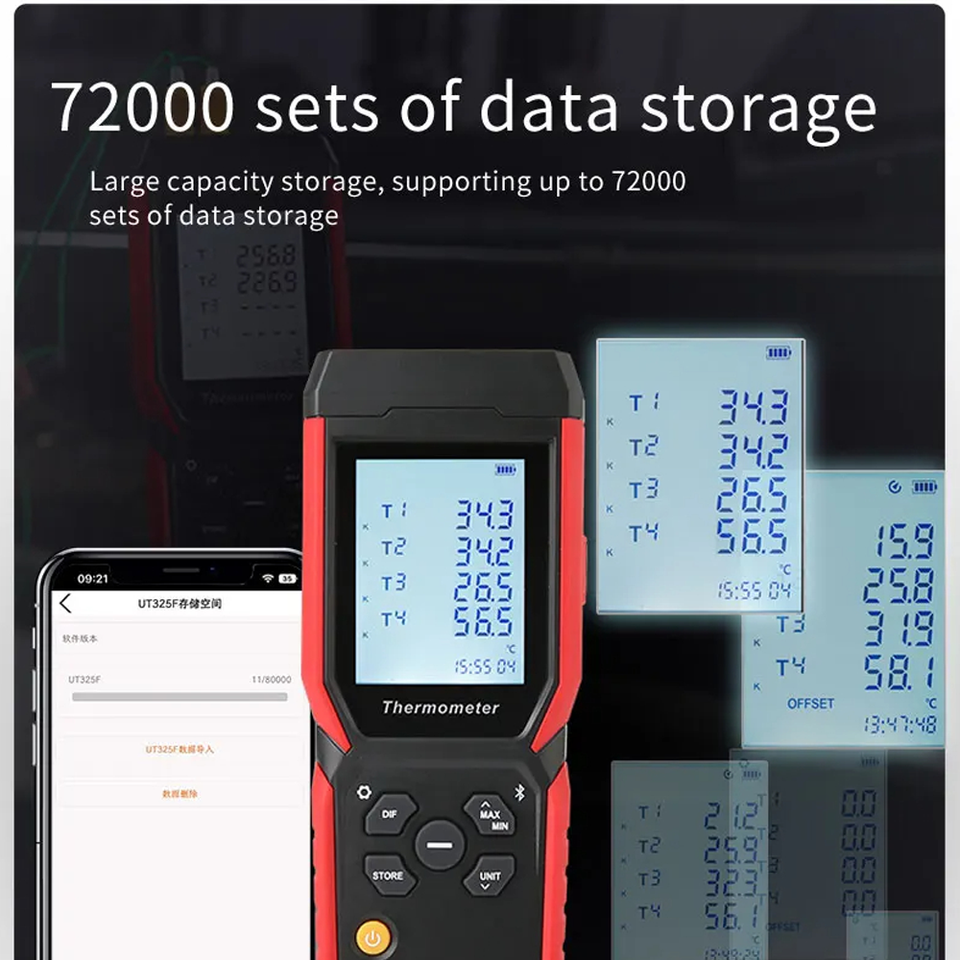 UT325F UNI-T Digital Thermometer 4 Channel Temperature Data Logger K J T E R S N Type Thermocouple Tester blvetooth Thermometer