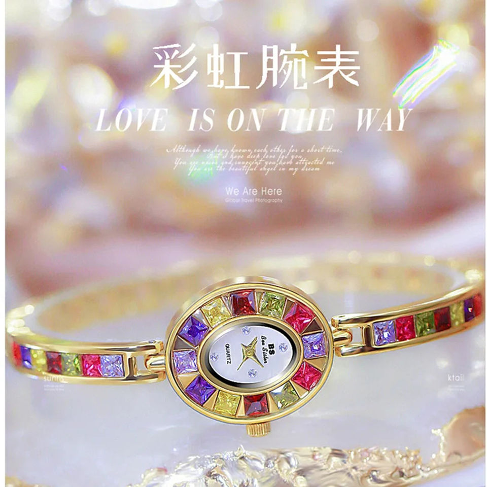 UTHAI2025 Luxury Women's 1681 Chain Quartz Clock Watch Top Brand Gold Gradient Rainbow Bracelet Waterproof Fashion Gift