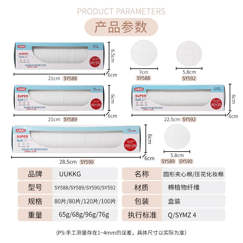 UUKKG Round Makeup Remover Pads 80-120pcs Boxed Cotton Pads Three Layer For Face Cleansing
