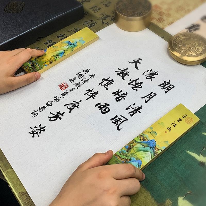 UV PRINTED HIGH QUALITY PAPERWEIGHT BRASS METAL CALLIGRAPHY ARTICLES PRESSING PAPER ORIENTAL STYLE - RIVER & MOUNTAINS