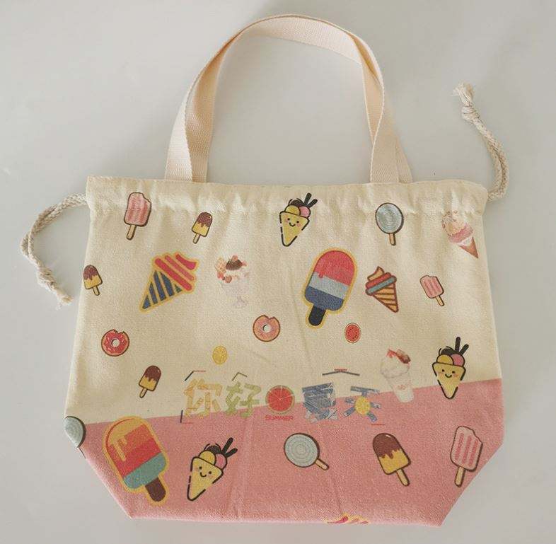 UV Print Recycled Cotton Canvas Double String Handbag Shoe Dust Drawstring Bag With Handle