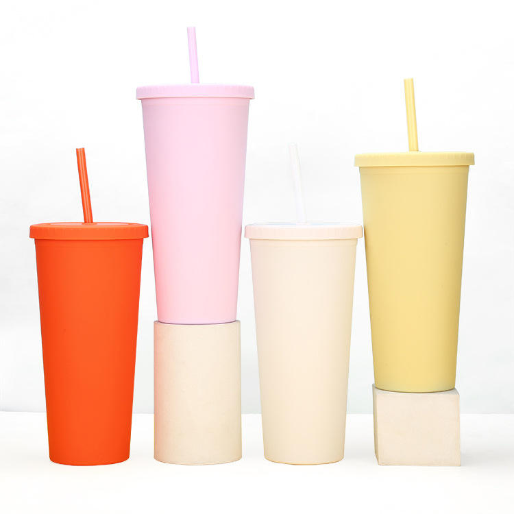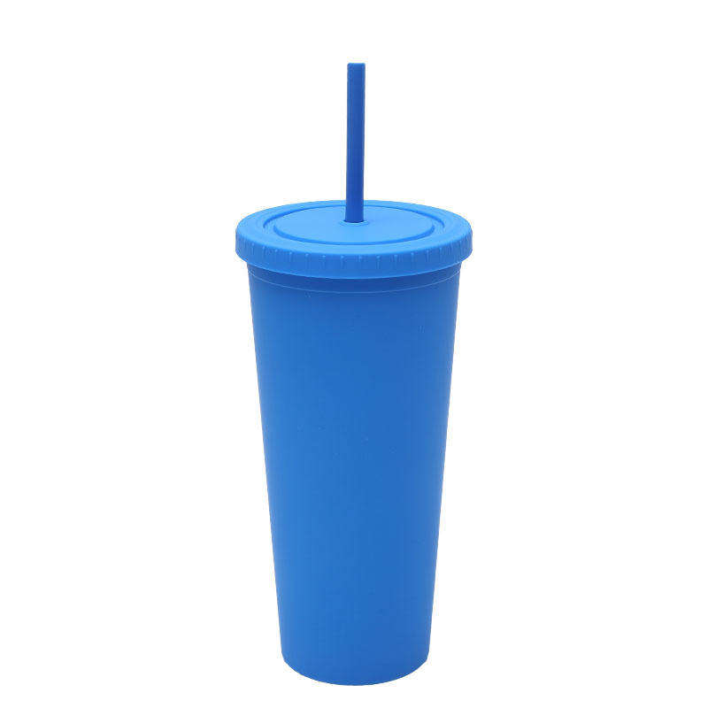 UV Printed Leak Proof 24oz Double Wall Acrylic Matte Colored Plastic Tumbler Cup With Lids and Straw
