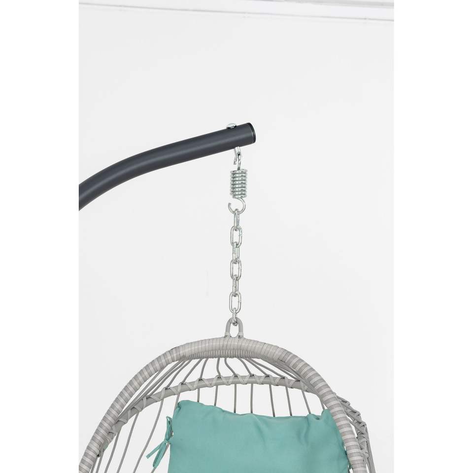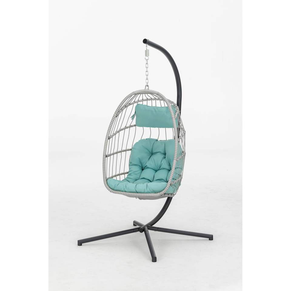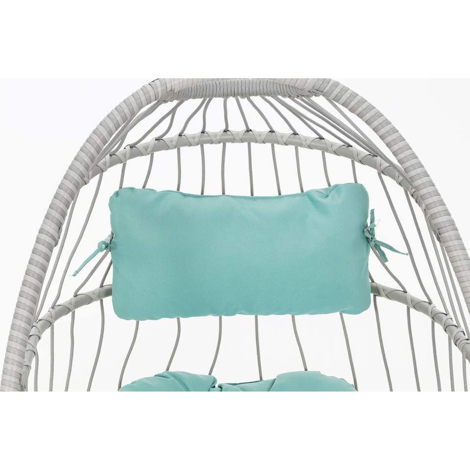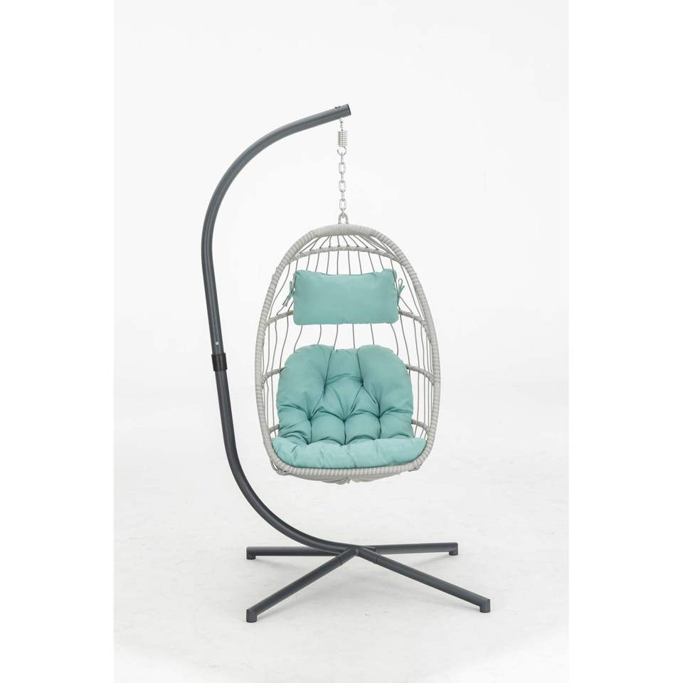 UV Resistant Outdoor Patio Egg Chair with Blue Cushion and Aluminum Frame Wicker Hanging Swing Chair Garden Furniture