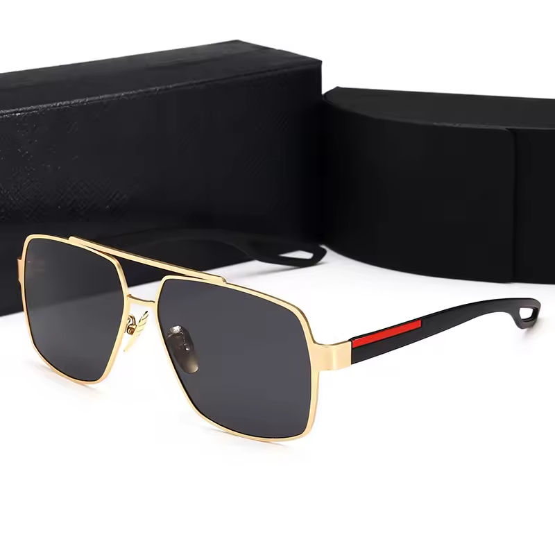 UV400 Polarized Sunglasses Designer Brand Double Bridge Square Aviation Glasses White Metal Alloy luxury sunglasses