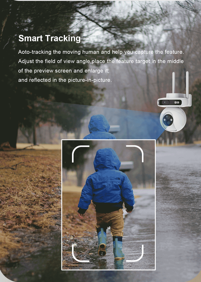 Human Motion Tracking, Night Vision, Motion Detection, Waterproof / Weatherproof, Pan-Tilt, Two-Way Audio