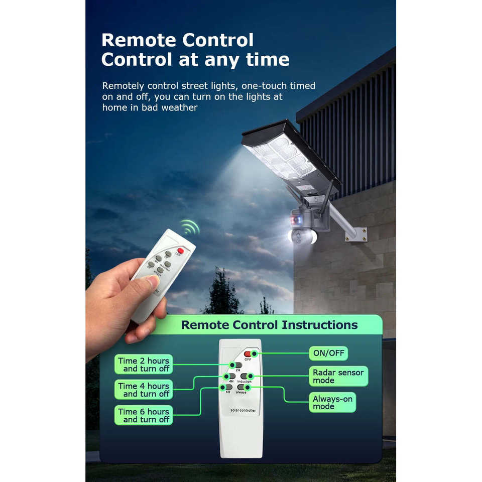 Ubox 6MP High Quality Outdoor Solar Street Light with IP66 PTZ Motion Detection PIR Sensor 4G Sim Card CCTV Camera and Wifi