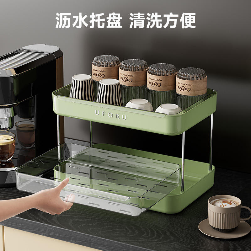 Uforu Double Tier Storage Rack Large Capacity Drain Tray For Kitchen Utensils