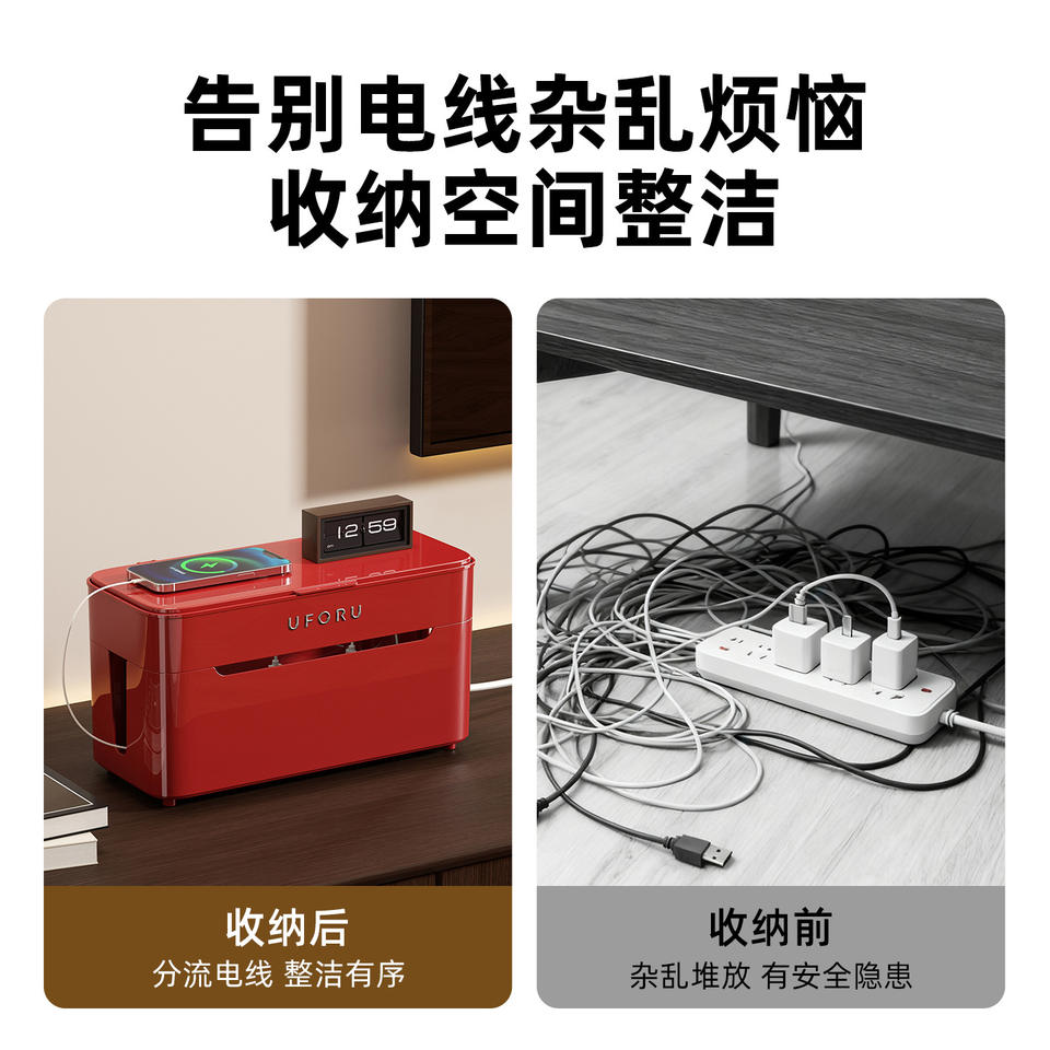 Uforu Power Strip Storage Box Rectangle With Partitions 360 Degree Casters For Home Office Cable Management