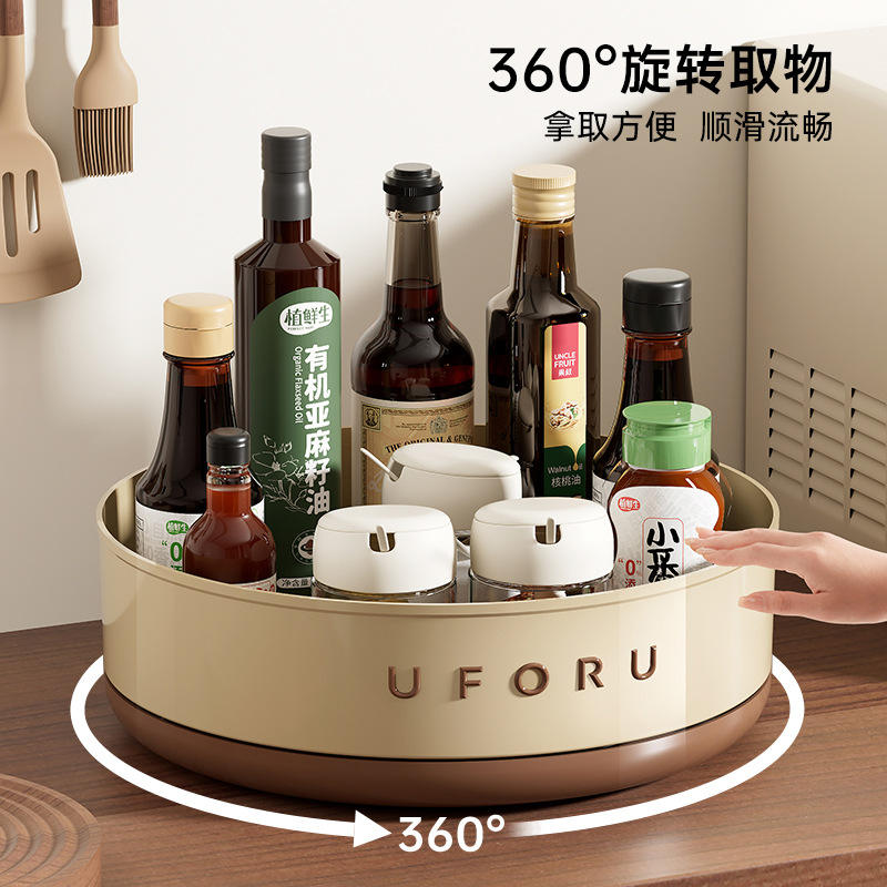 Uforu Rotating Kitchen Shelf Large Capacity Condiment Tray With 360 Degree Rotation For Oil Salt Soy Sauce Vinegar Storage