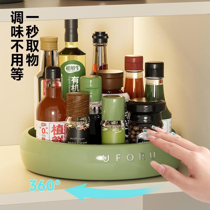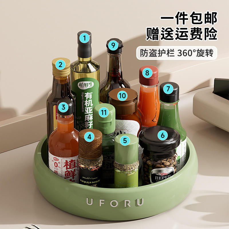 Uforu Rotating Kitchen Storage Rack Large Capacity Round Spice Organizer For Oil Salt Soy Sauce Vinegar Bottles Condiments
