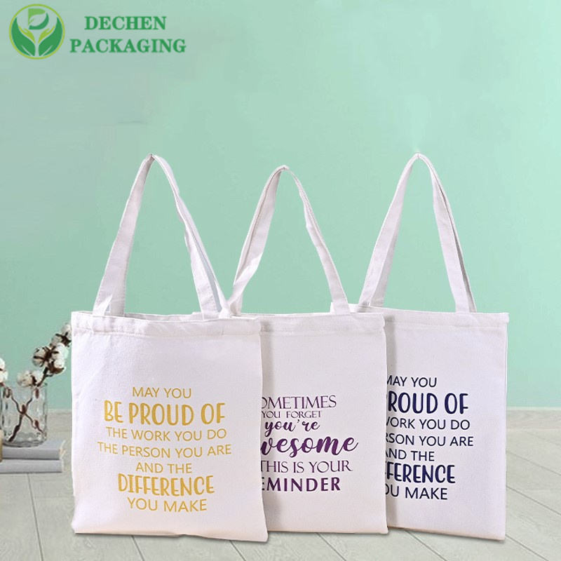 Custom Logo Canvas Tote Bag Print Plain Zipper