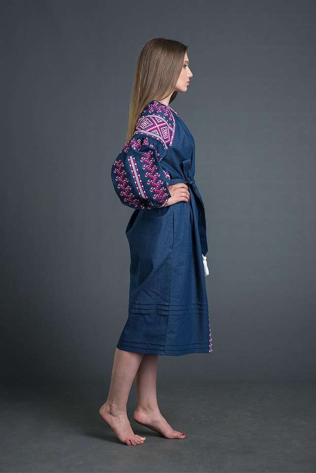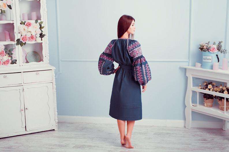 Ukrainian Embroidered Cotton Linen Maxi Dress for Women Casual Tassel Decoration Natural Waistline Washable Woven OEM Service