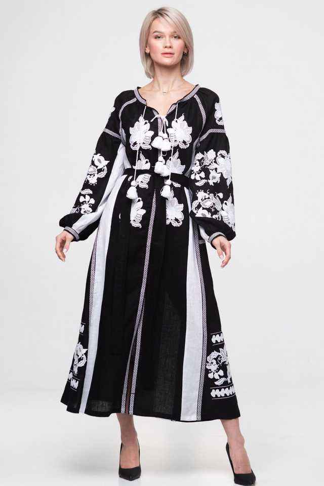 Ukrainian Floral Embroidered Long Sleeves Boho Style Expansive Long Women Stylish Machine Embroidery Ukraine Dress For Women's