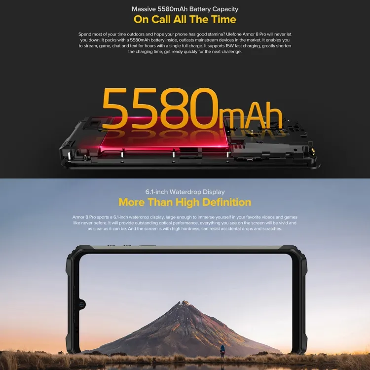 Ulefone Armor 8pro 4G Android 11 Rugged Phone Qwerty Keyboard 8GB+128GB Memory FHD LCD NFC Fingerprint LTE Shockproof Gaming