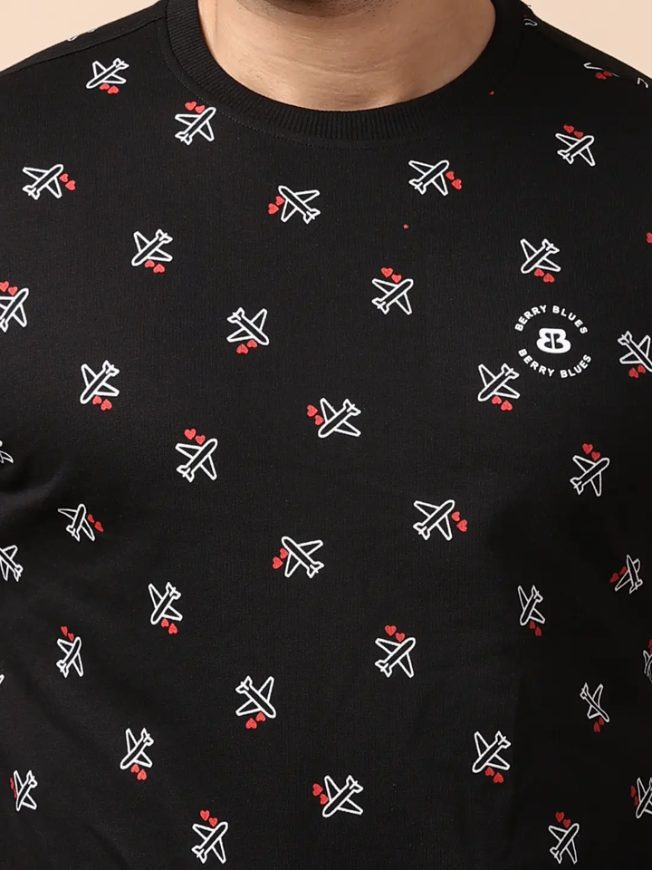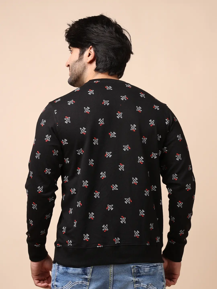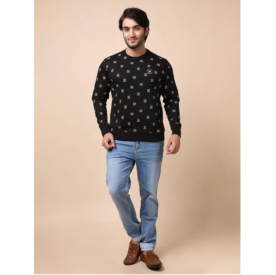 Ultimate Comfort Stylish Fit Tredy Black Loopknit Sweatshirt Full Sleeves Neck All-Day Wear for Winter Season Digital Printing