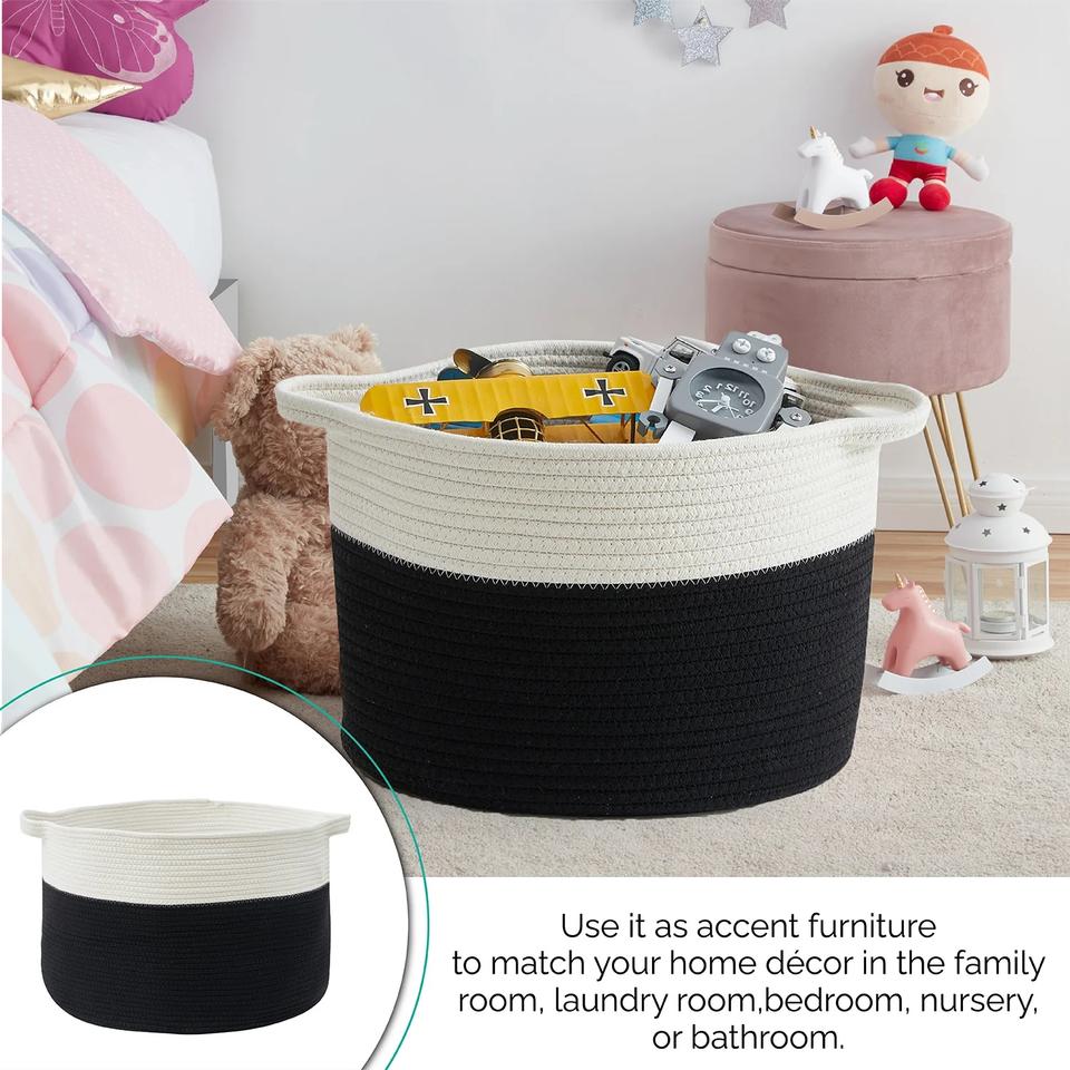 Ultimate Look Woven Cotton Rope Basket White & Black Color for Clothes & Toys Storage