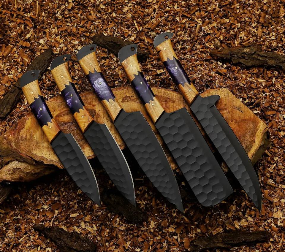 Ultra Sharp 5 Pieces Kitchen Knife Set with Block Wooden High Carbon Stainless Steel Professional Chef Knifed Kit Kitchen