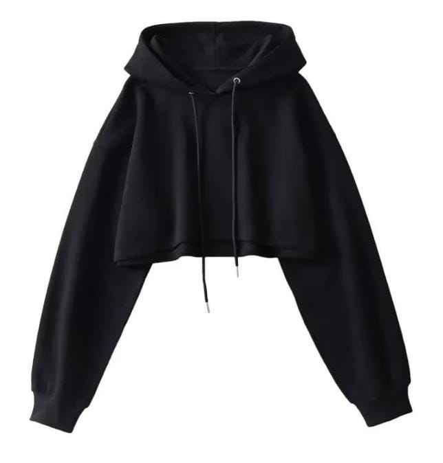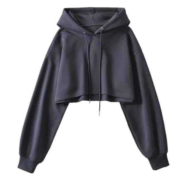 Ultra-Short Women's Hooded Sweatshirt Oversized 3D Pattern Long Sleeve Embroidered Front Logo Casual Silk Streetwear