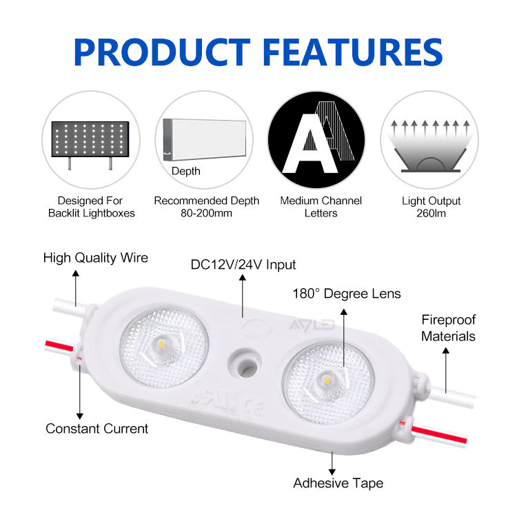 Product name:DC 12V 2W 2PCS 6500K White Injection 2835 SMD LED Module
