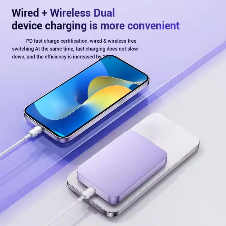 Ultra Slim 5000mAh Aluminum Alloy Power Bank Portable External Battery Charger with Magnetic Wireless Charging 20W Output Power