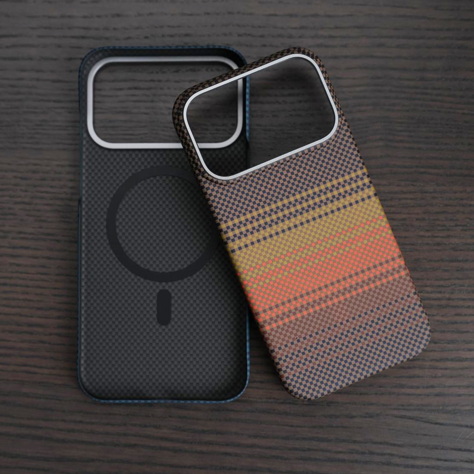 Ultra Slim Carbon Fiber Case for iPhone 17 Pro Max Sunset Yellow Precise Camera Cutout Magnetic Ring Shockproof PC