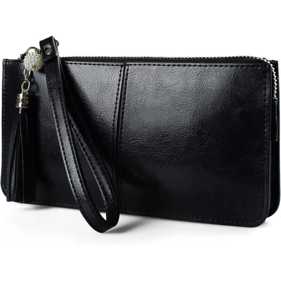 Ultra-Slim Women's Genuine Leather Wristlet Clutch Lightweigh1t RFID Protected Credit Card Wallet Anti-Theft Shoulder