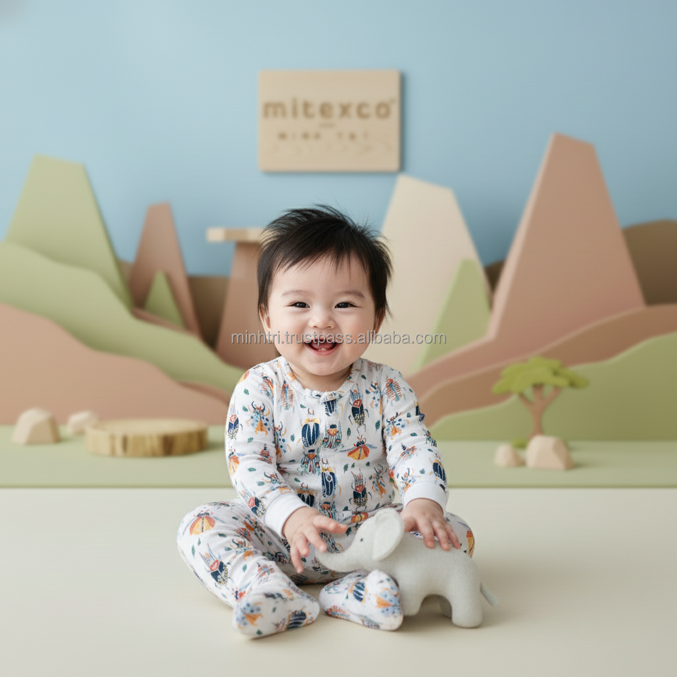 Ultra-Soft Bamboo Spandex Baby Footed Sleeper Pajamas | Newborn Infant Romper Jumpsuit | Custom Bug Print OEM Wholesale Price.