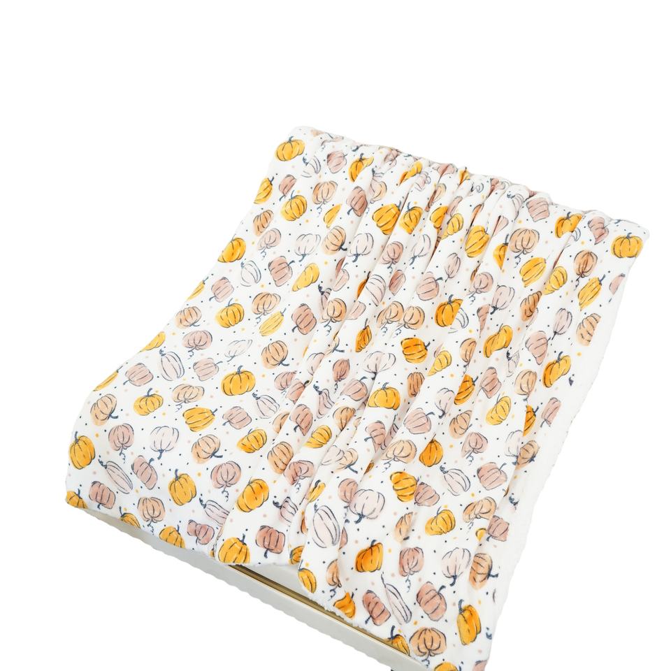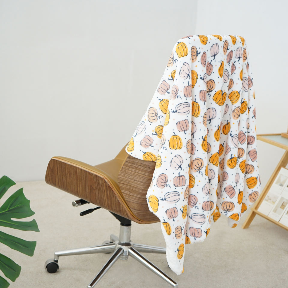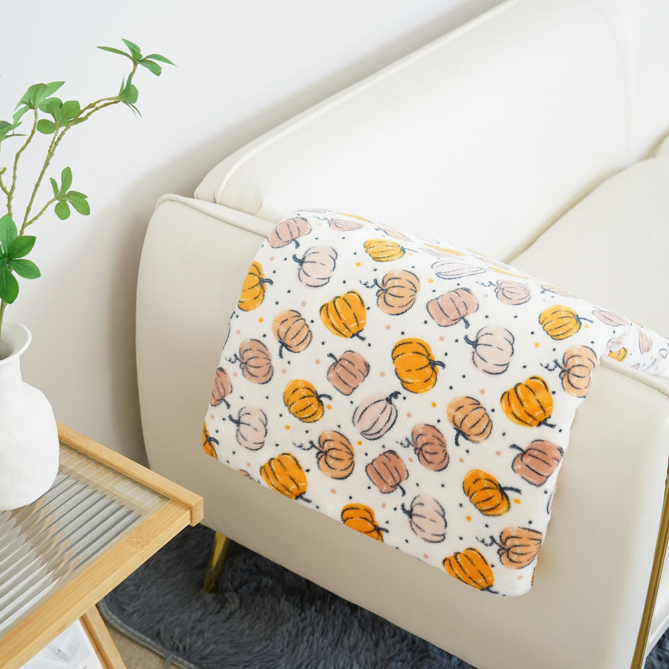 Ultra Soft & Plush Autumn & Halloween Chic Themed Oversized Accent Throw Blankets (Golden Pumpkins)