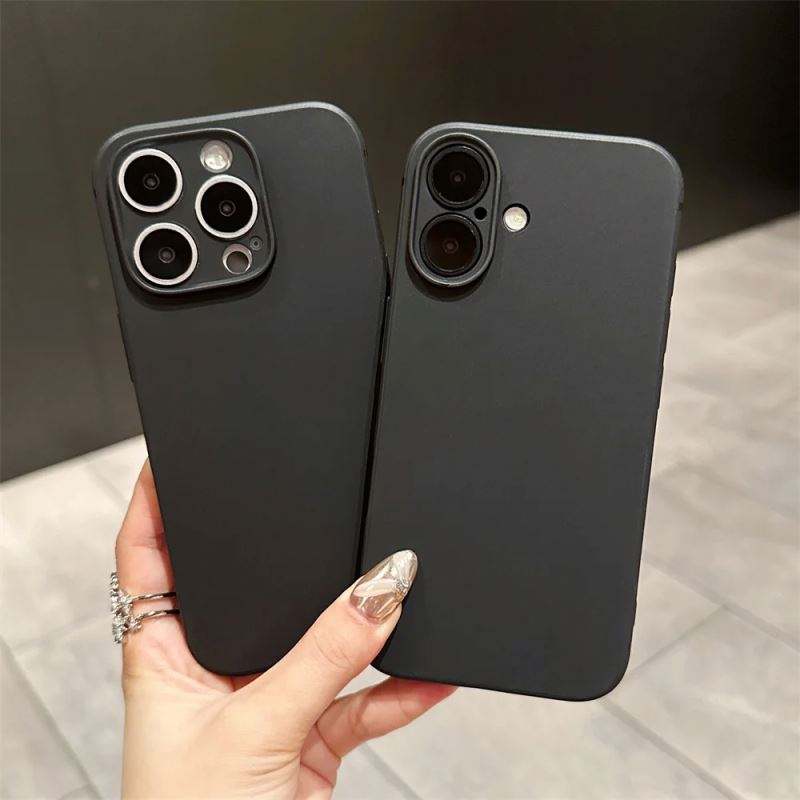 Ultra Thin Frosted Matte Black TPU Case for iPhone 16 15 14 13 12 Mini 11 Pro Max X XS XR 7 8 Plus Camera Lens Protective Cover