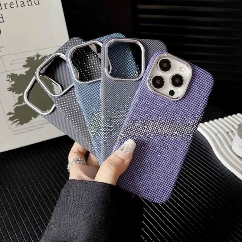Ultra-Thin Hard PC Cover Aramid Fiber Carbon Texture Splice Magnetic Charging Shockproof Metal Camera Guard for Case for