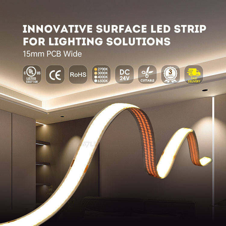 COB LED Strip 15mm wide PCB and wide phosphor design White 24V