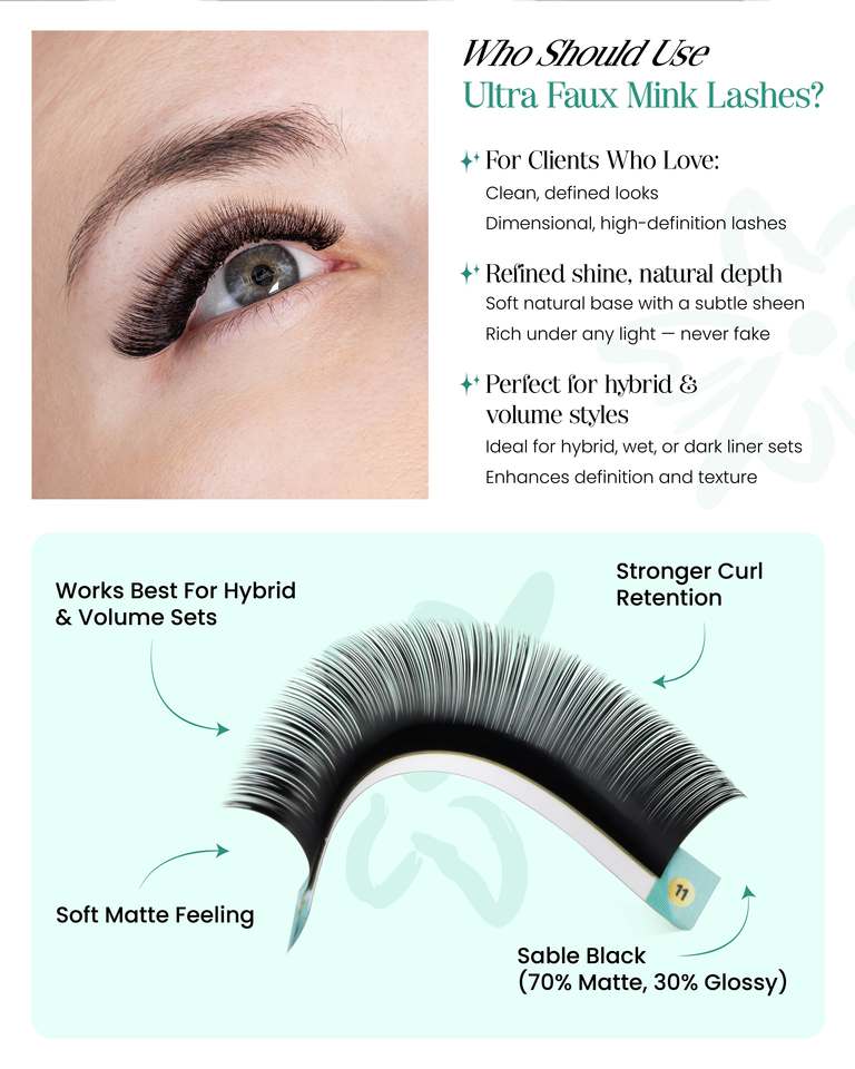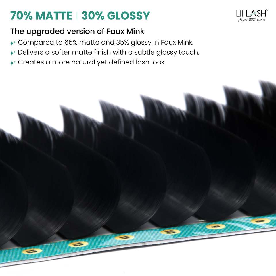 Ultra faux mink lash tray dual layer tech volume lash extensions semi matte faux mink lashes wholesale mixed length tray
