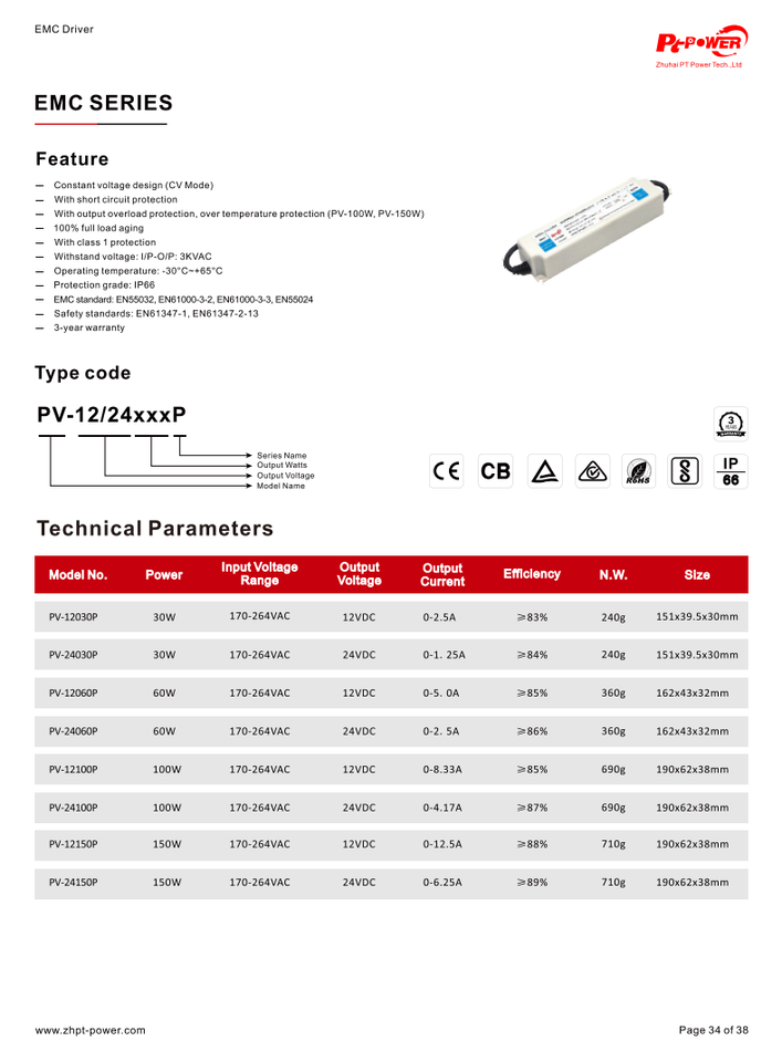 EMC standard:EN61000-3-2,EN61000-3-3,EN55024
