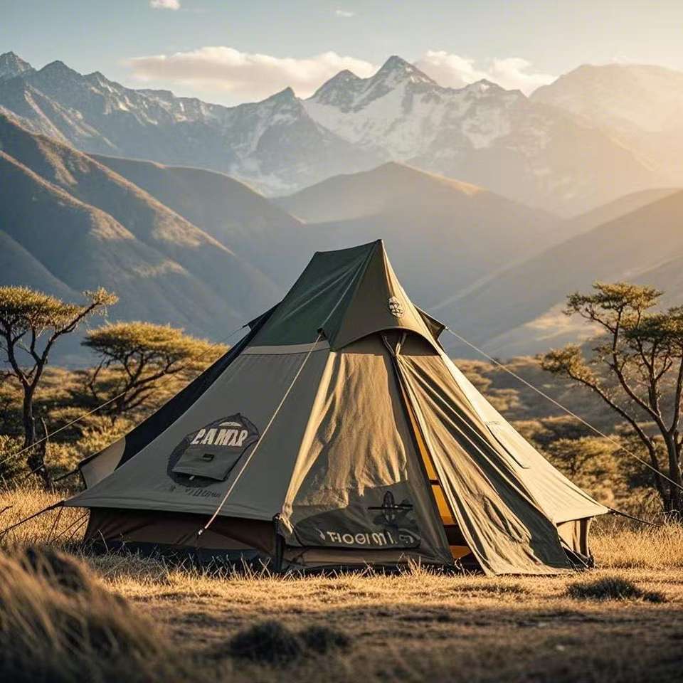 Ultralight Khaki One-Bedroom Pyramid Shelter Tent UV-Resistant Material with Ventilation System for Desert and Beach Camping