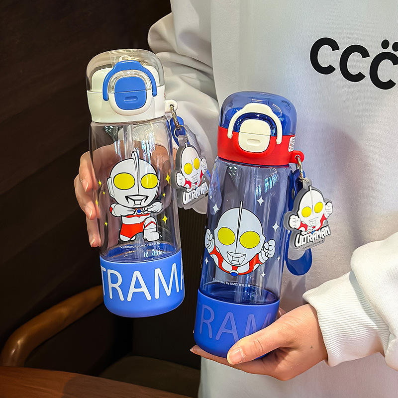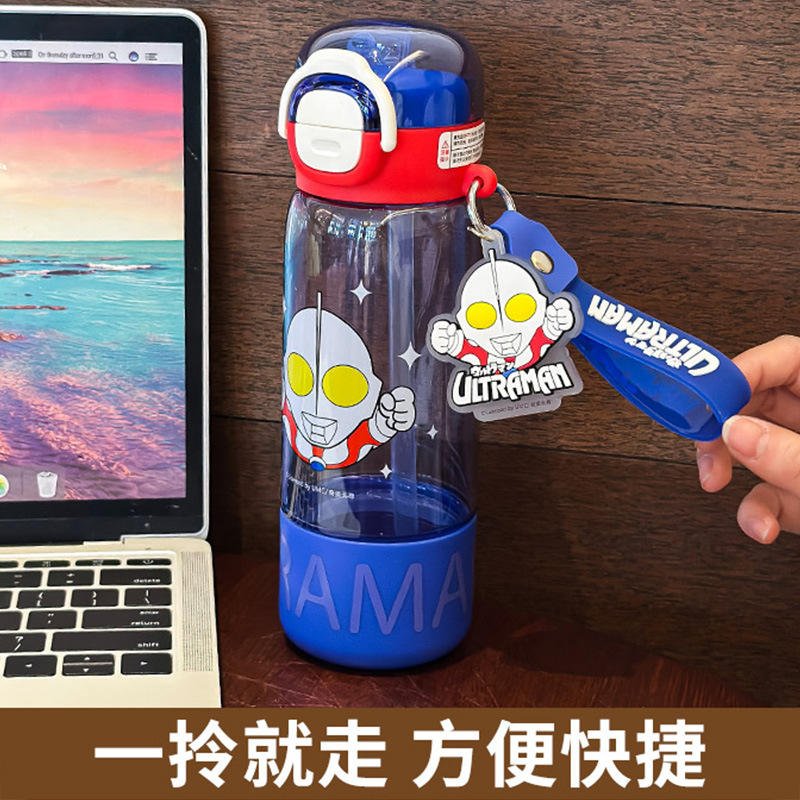 Ultraman Children's Water Bottle 500Ml Tritan Bpa Free With Straw For School Kids Backpack Accessory