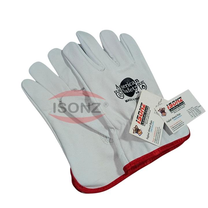 ISONZ Linned Short Wing Thumb Mechanics Driver Grain Cow Skin Leather Rigger Gloves Anti-Impact Anti-Cut