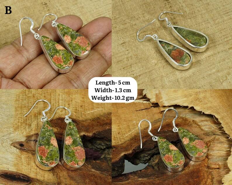 Unakite Jasper Earrings in Sterling Silver Big Gemstone Design Handmade Jewelry Gift for Valentine Day