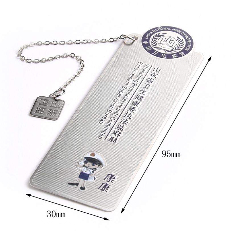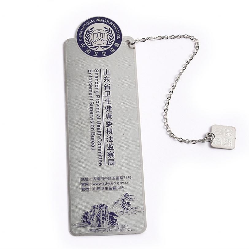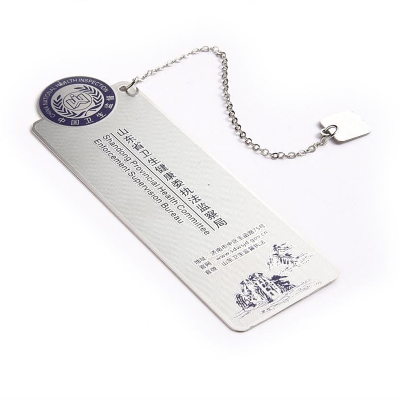 Unbreakable Customized Province Label Rectangle Shape Metal Bookmark with Pendant