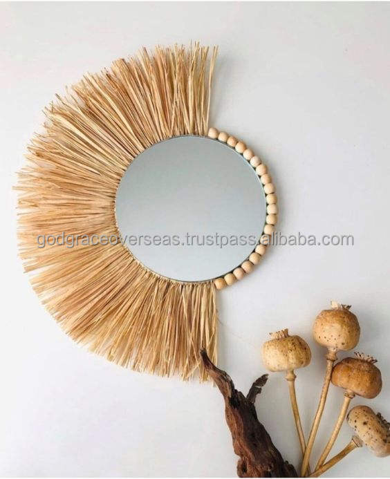 Unbreakable Living Room Decor Wall Handicraft Decorative Wall Rattan Mirror for Home Mirror Acrylic Vintage Antique Wall Mirror