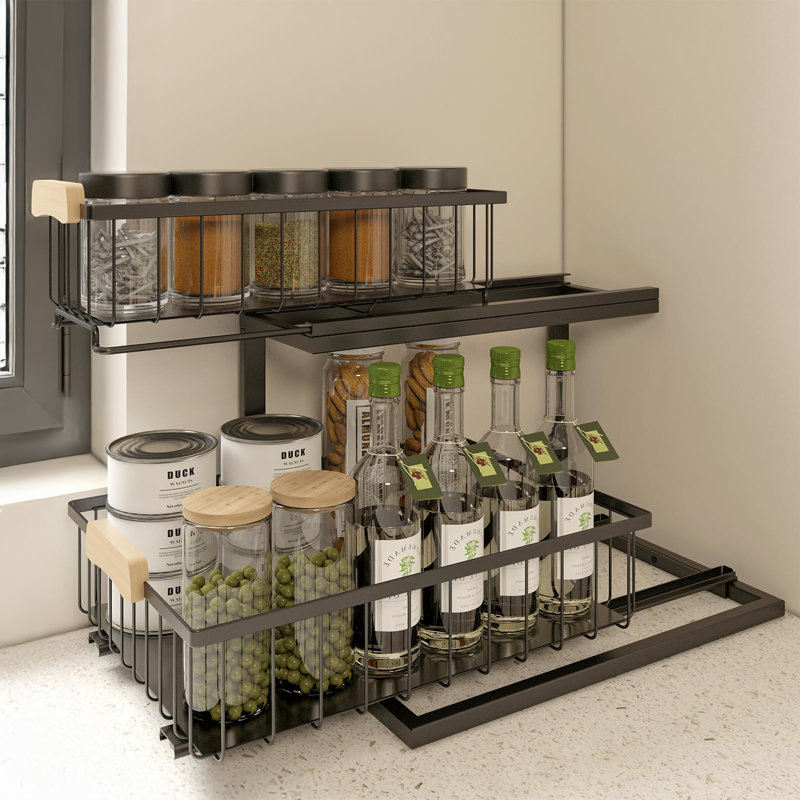 Under Sink Organizer Metal Larger Under Cabinet Organizers and Storage Pull Out Organizer for Bathroom Kitchen - 2 Pack (Black)